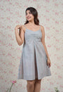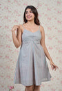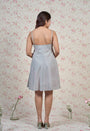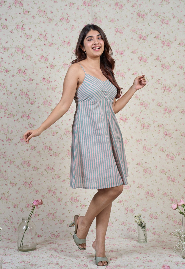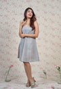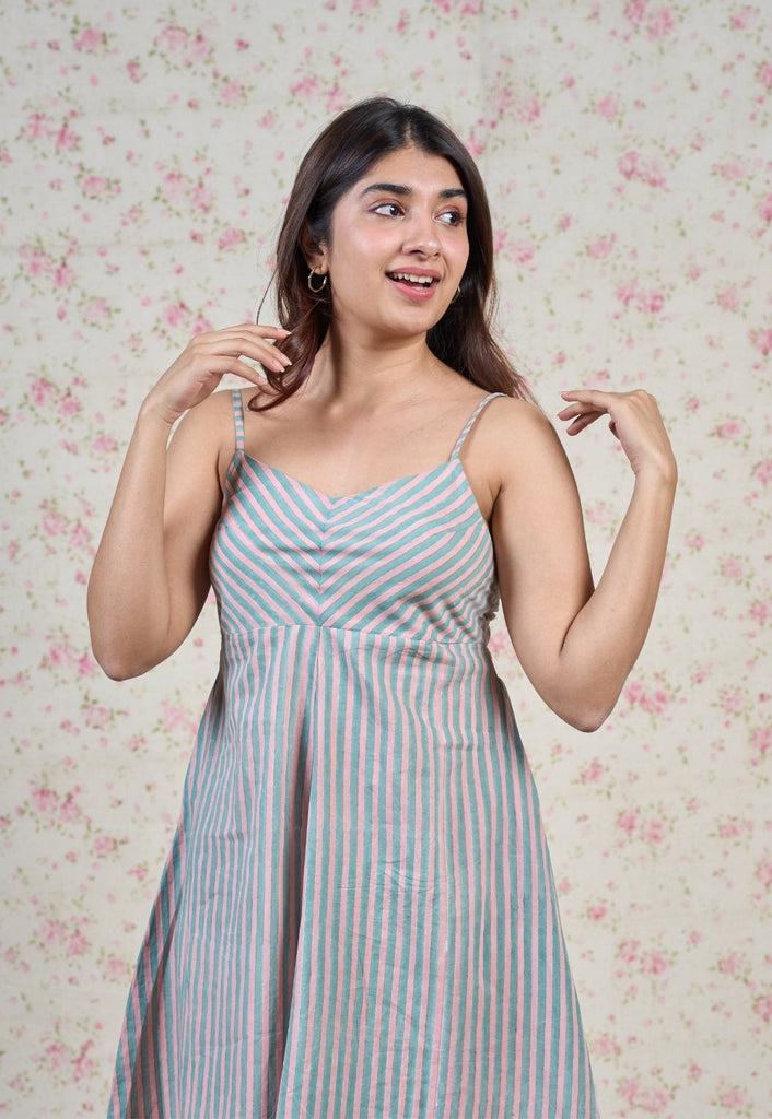 Blue-Pink Sanganeri Handblock Printed Mul Cotton A Line Dress with Mul Lining.