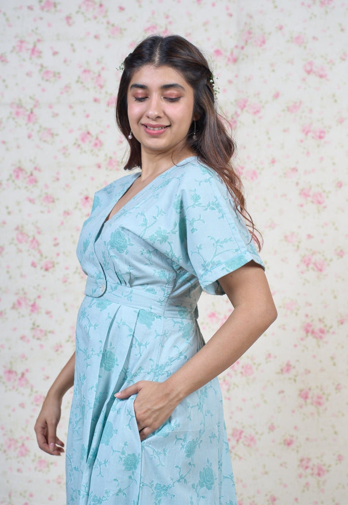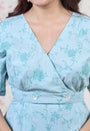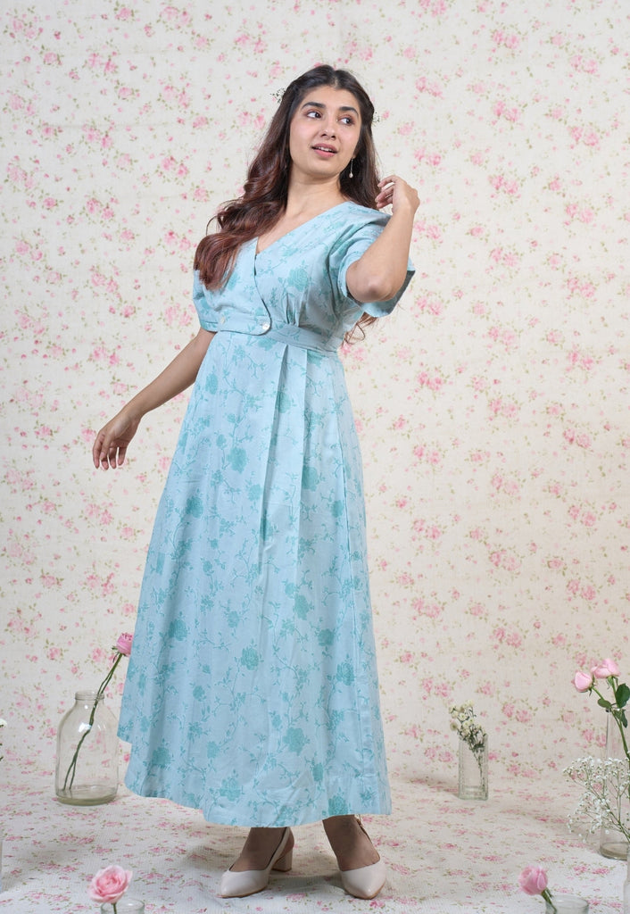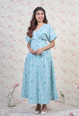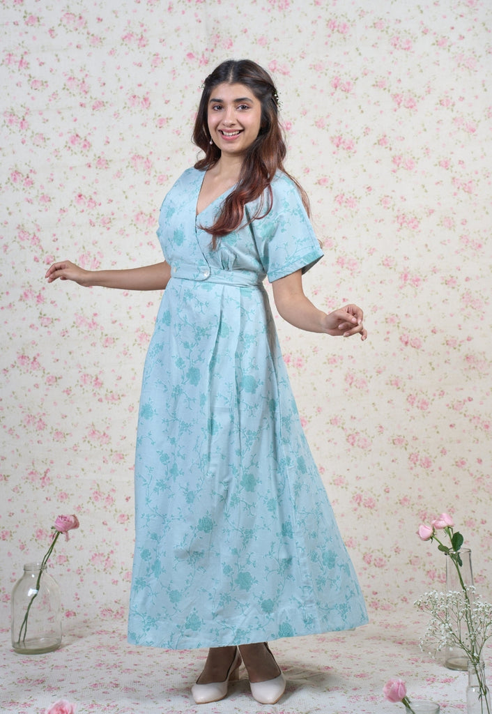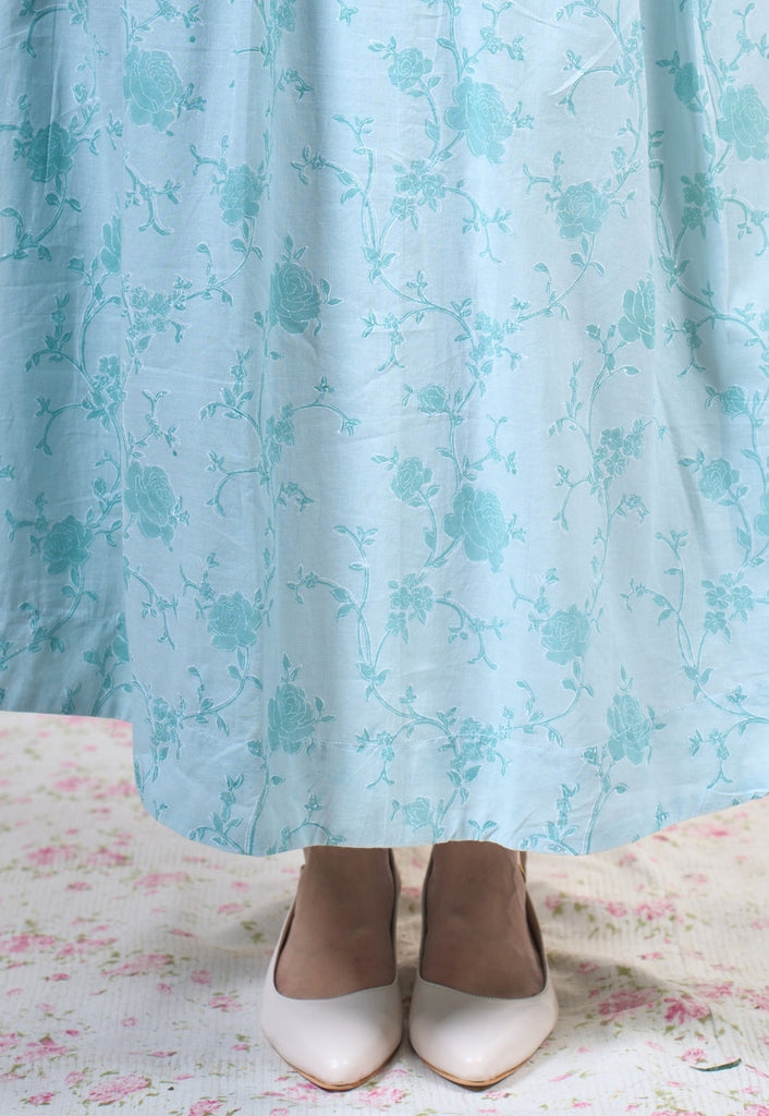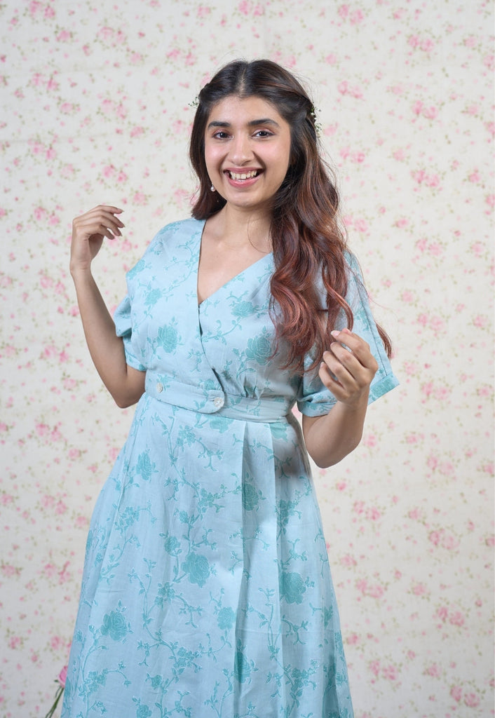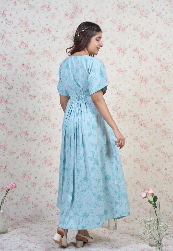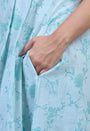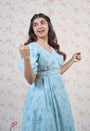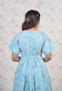 Light Blue Sanganeri Handblock Printed Mul Cotton A Line Dress.