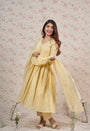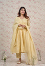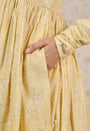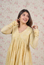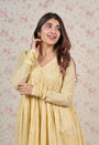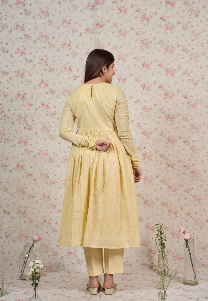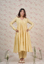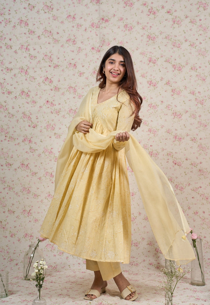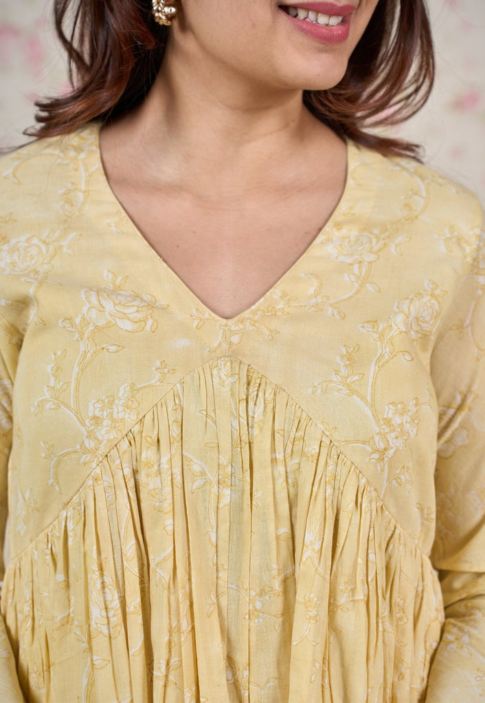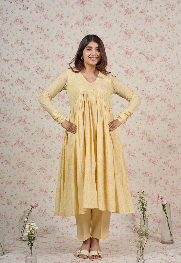 Light Yellow Sanganeri Handblock Printed Mul Cotton A Line Kurta.