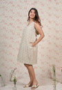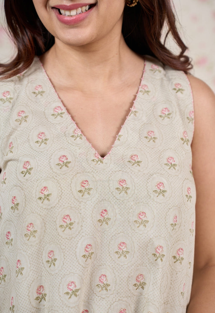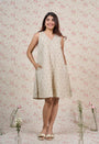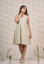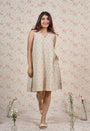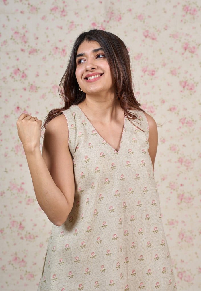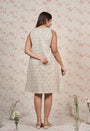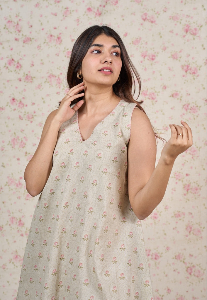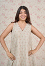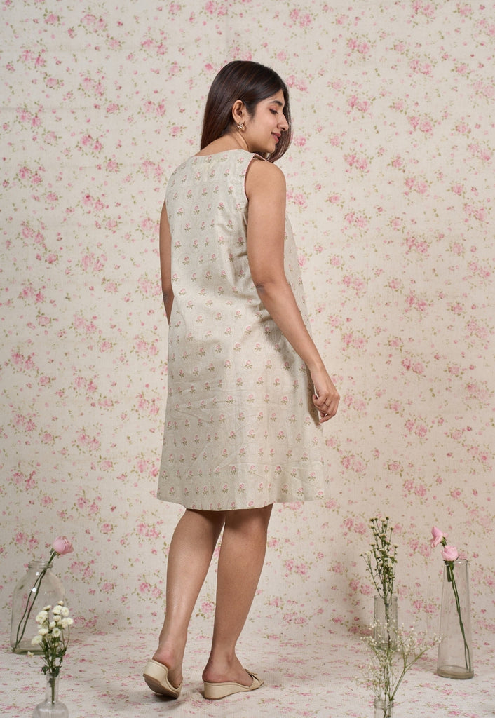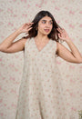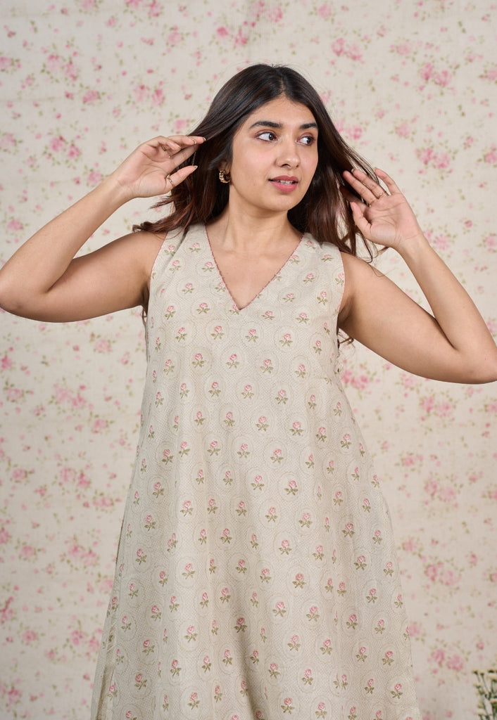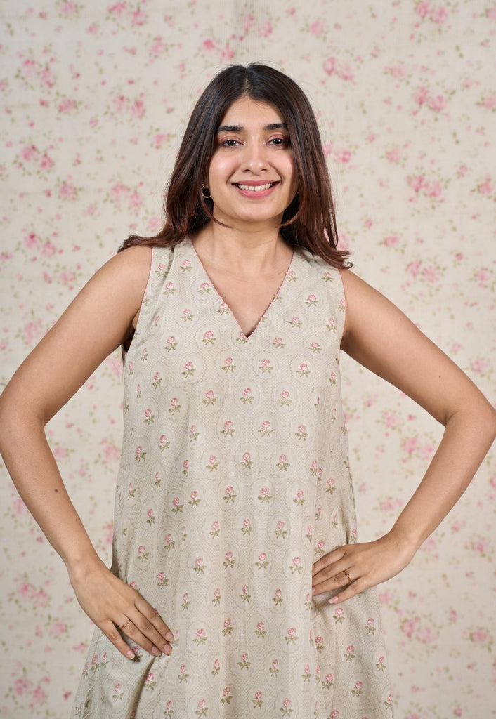Light Grey Sanganeri Handblock Printed Mul Cotton A Line Dress.