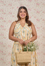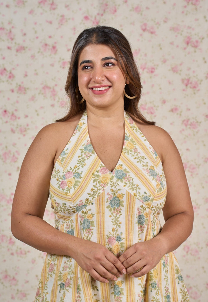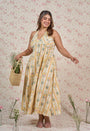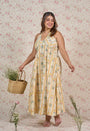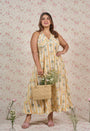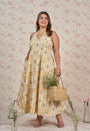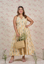 Light Yellow Sanganeri Handblock Printed Mul Cotton A Line Dress.